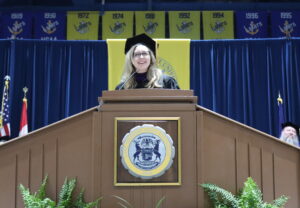 Jastorff, who graduated with a bachelor’s degree in psychology and a minor in biology, encouraged students in an “entertaining, short and sweet” speech to “do what makes you happy. Have confidence in your abilities, even if no one else does.”